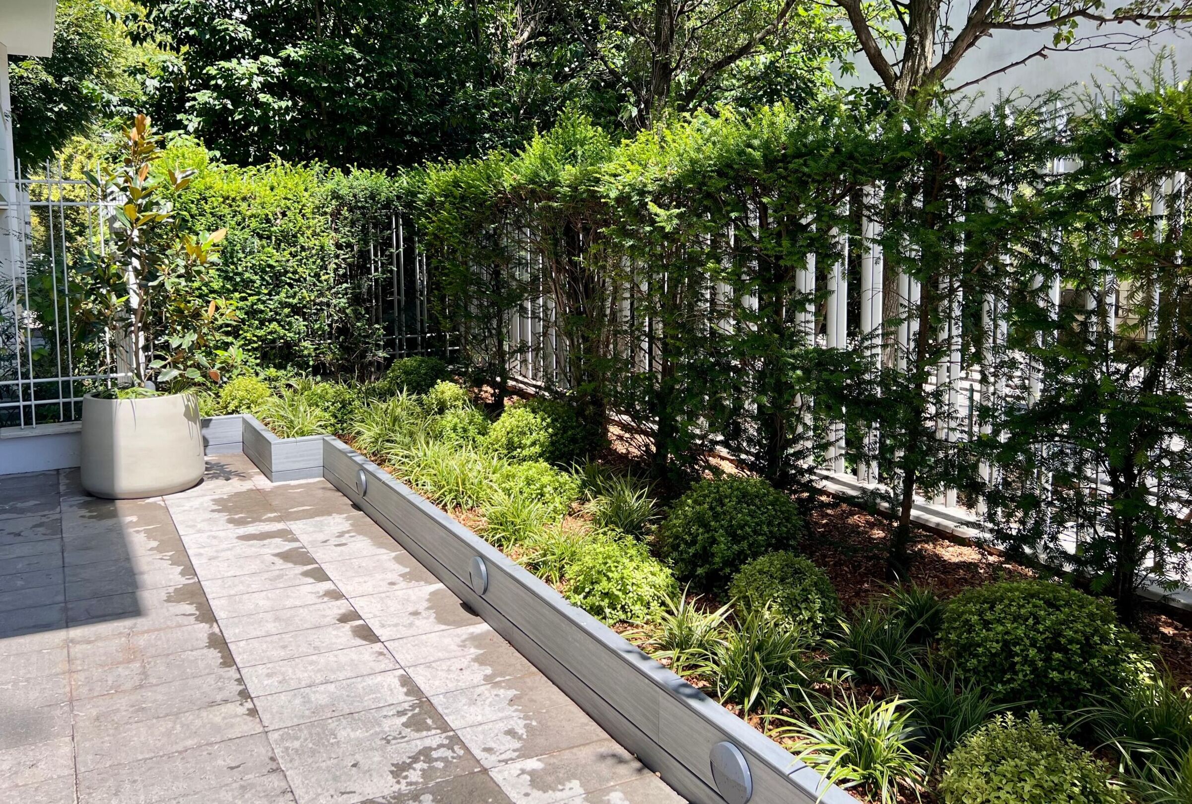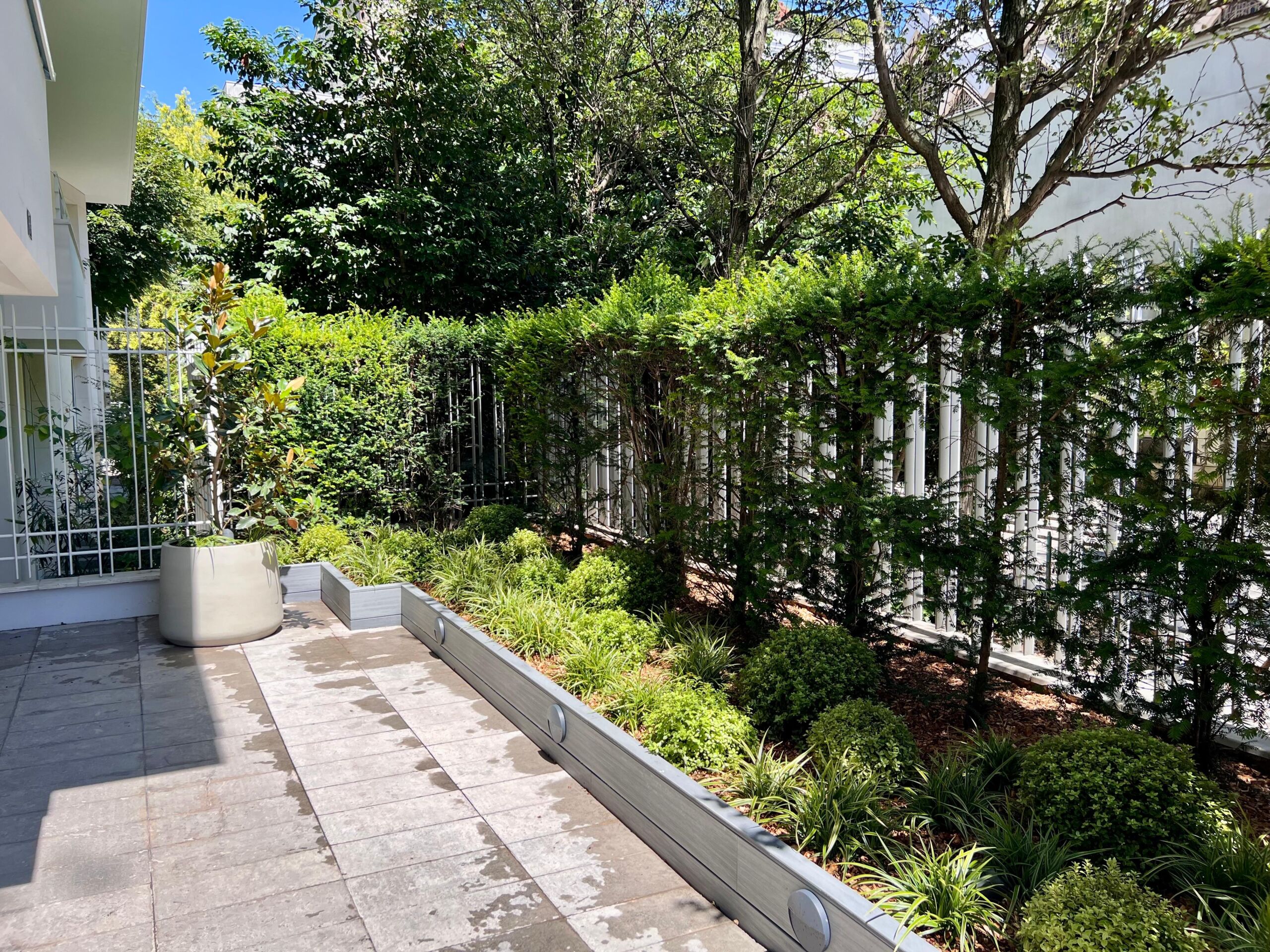 Agave Paysage a entièrement repensé l’entrée d’une copropriété située dans le quartier du Gros-Caillou à Paris. Autrefois délaissée, cette allée a été transformée en une entrée verdoyant, accueillante et mise en lumière à la nuit tombée. Les résidents profitent désormais d’une entrée agréable et sécurisante, même en soirée.