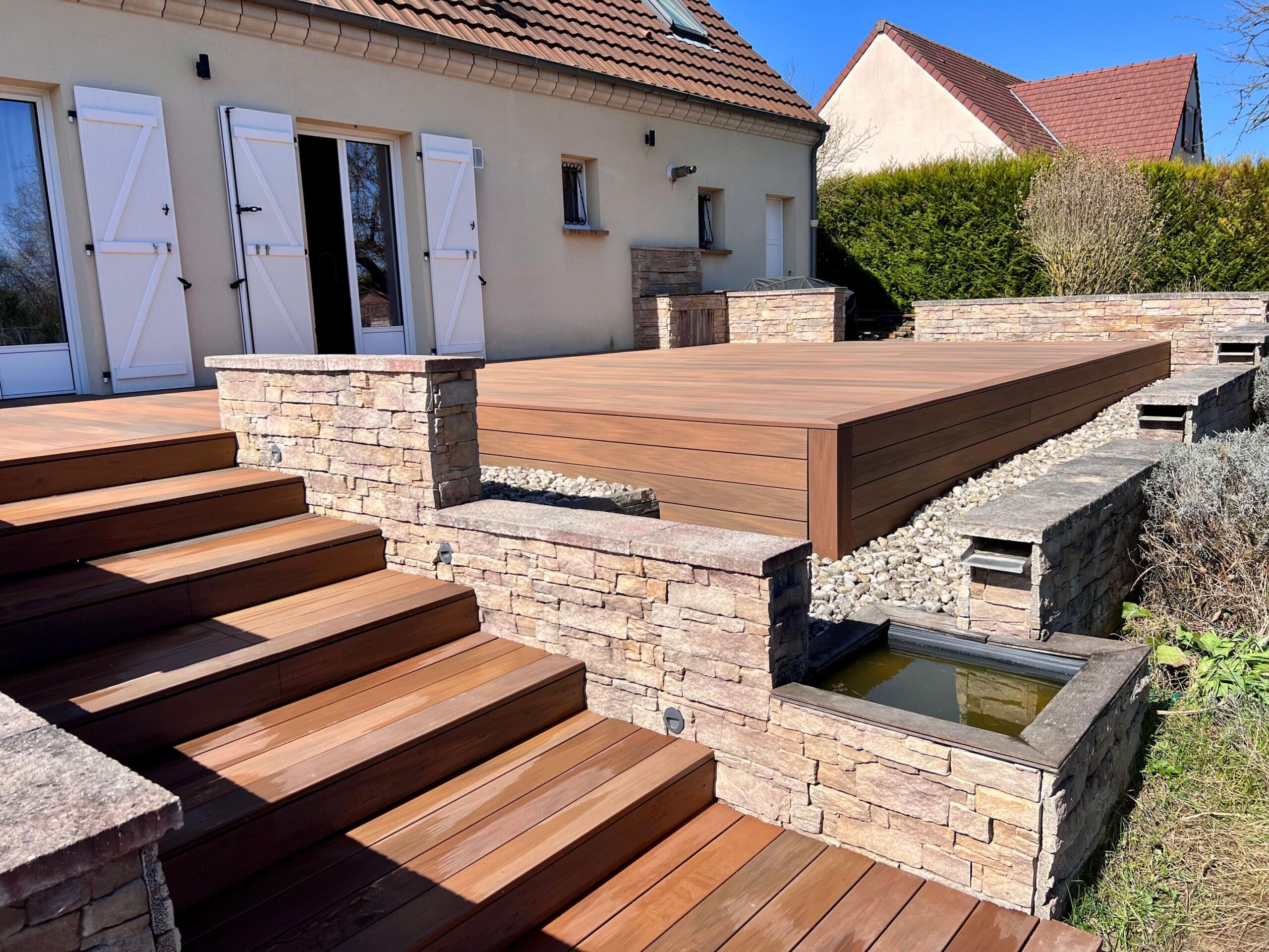 Agave Paysage a réalisé la transformation complète d’une terrasse de 40m². Notre équipe a conçu un espace extérieur durable et facile d’entretien, pour offrir à nos clients une terrasse familiale moderne et chaleureuse.